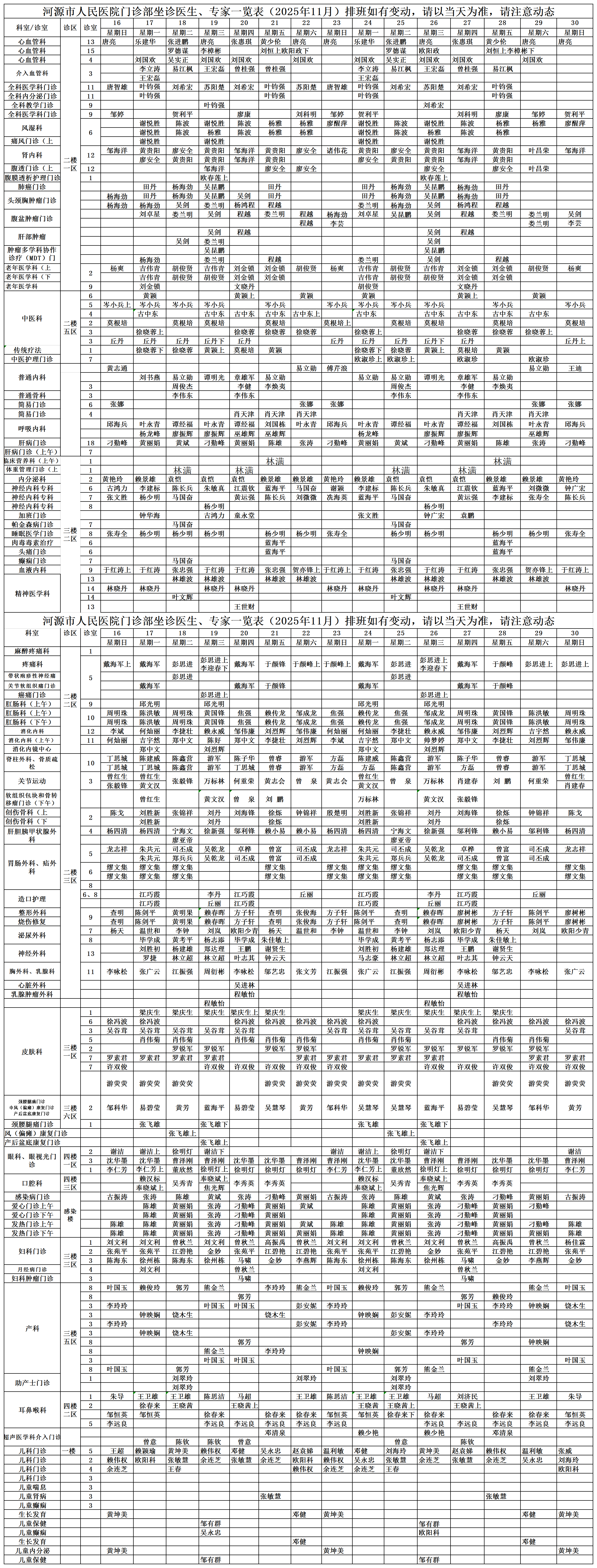 河源市人民医院门诊部坐诊医生、专家一览表(2025年11月)