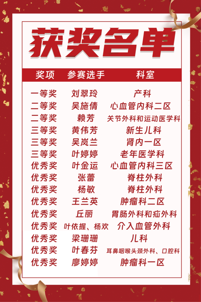 经过紧张激烈的角逐,最终评选出一等奖1名、二等奖2名、三等奖3名、优秀奖9名。每一份荣誉的背后,都凝聚着护理人员对专业的执着追求与对患者的深切关怀。