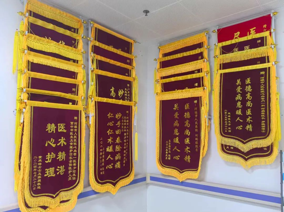 当IABP支持下急诊PCI等高精尖技术相继开展,科室服务价值实现质的飞跃。统计显示,近三年人均医疗服务收入增量为42.3%。通过定期开展病例讨论、技术培训及质量评估,心内科主要技术操作成功率达100%,这些突破不仅体现在年度服务收入的增长,更凝结在患者送来的一面面锦旗里。
