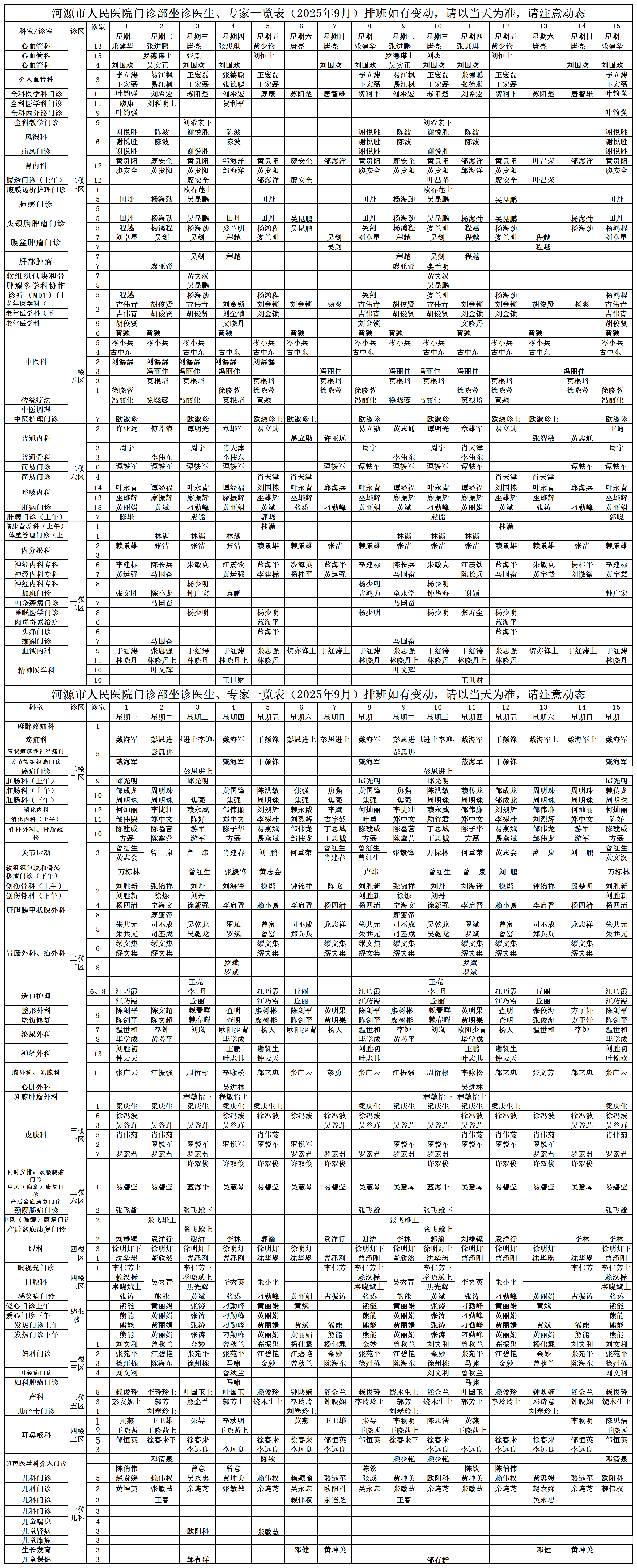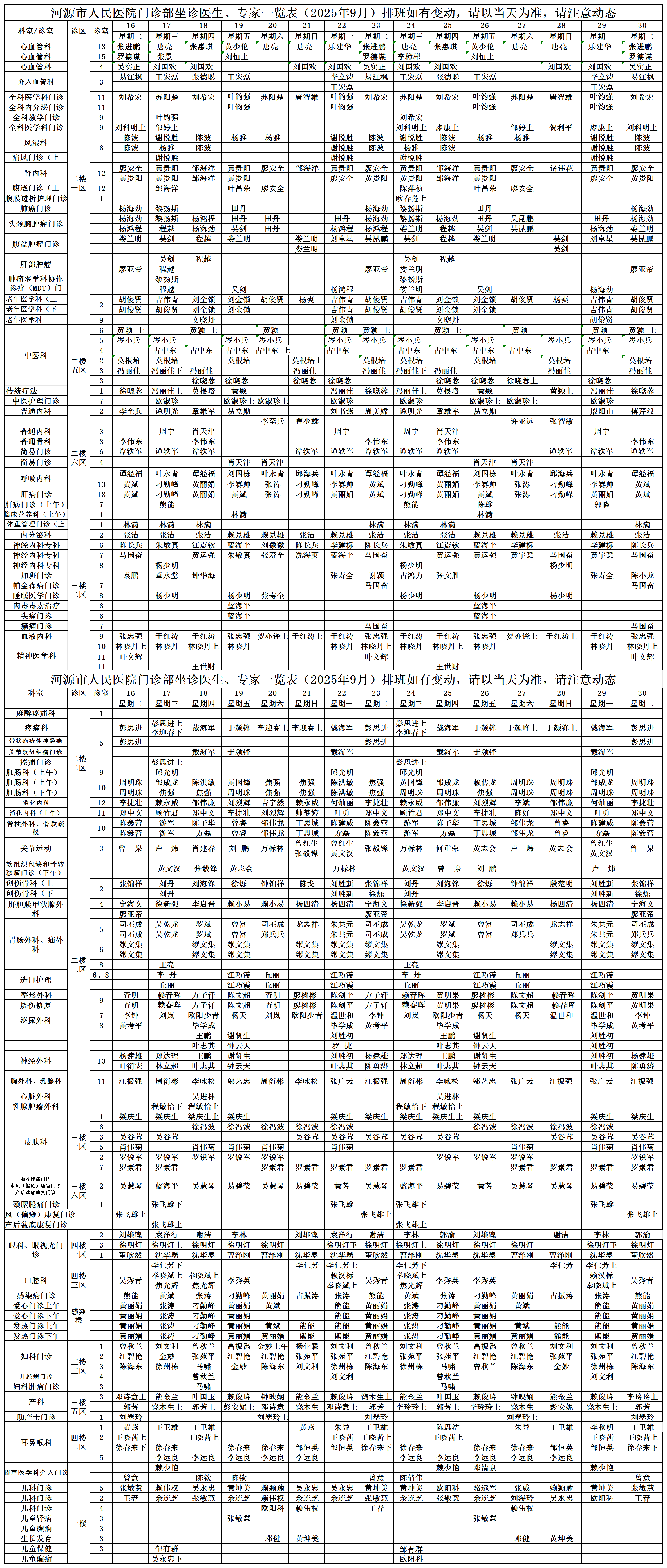 河源市人民医院门诊部坐诊医生、专家一览表(2025年9月)