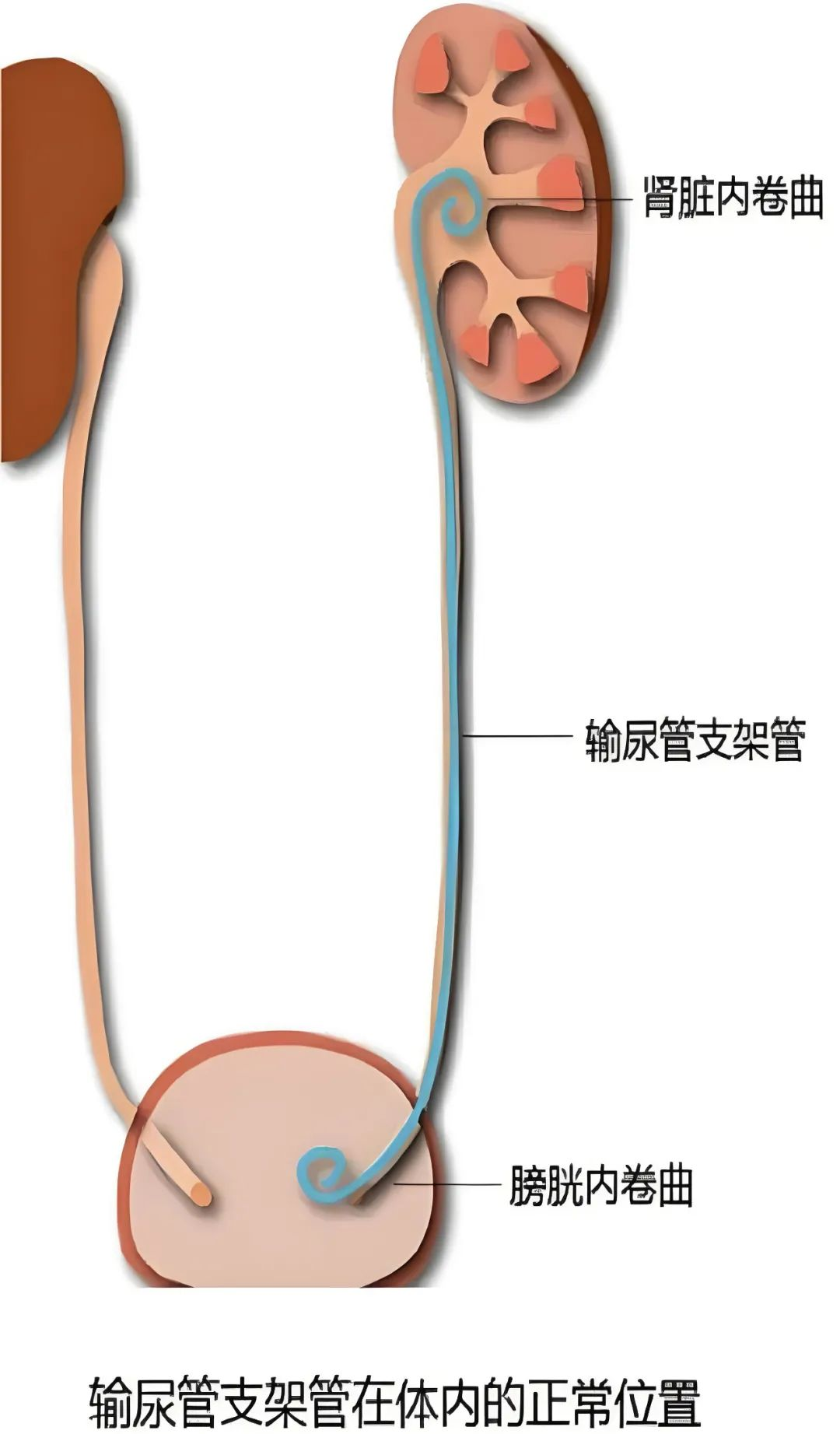 双J管又称输尿管支架管,是一根细长的两头弯曲的软管,弯曲的一端位于肾盂,一端位于膀胱,用以支撑于输尿管内,使尿液正常排出,因两端卷曲形似英文字母“J”,故称为双“J”导管。