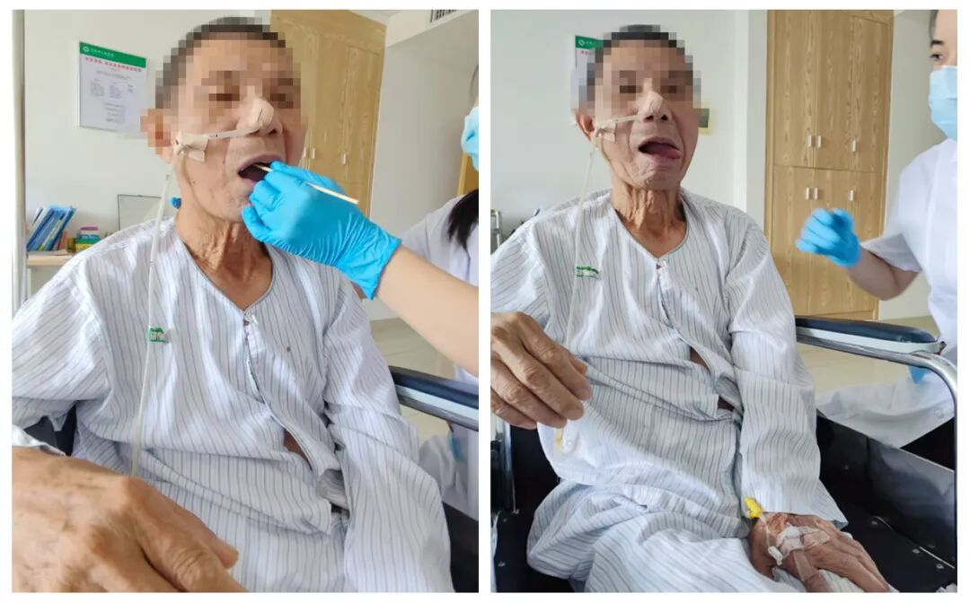 近日,71岁的黄伯因“突发言语不清”入院,患者既往有“高血压、脑梗死”病史。此次病情表现为左下肢行走不稳,左上肢力量减退,伴饮水呛咳,吞咽功能筛查(洼田饮水试验)为3级,无法进食,康复医学科经过专业评估、精准定位,为患者制定了运动、摄食等个性化康复训练以帮助患者恢复吞咽功能,患者从无法进食到可进食粘稠食物仅用六天时间。