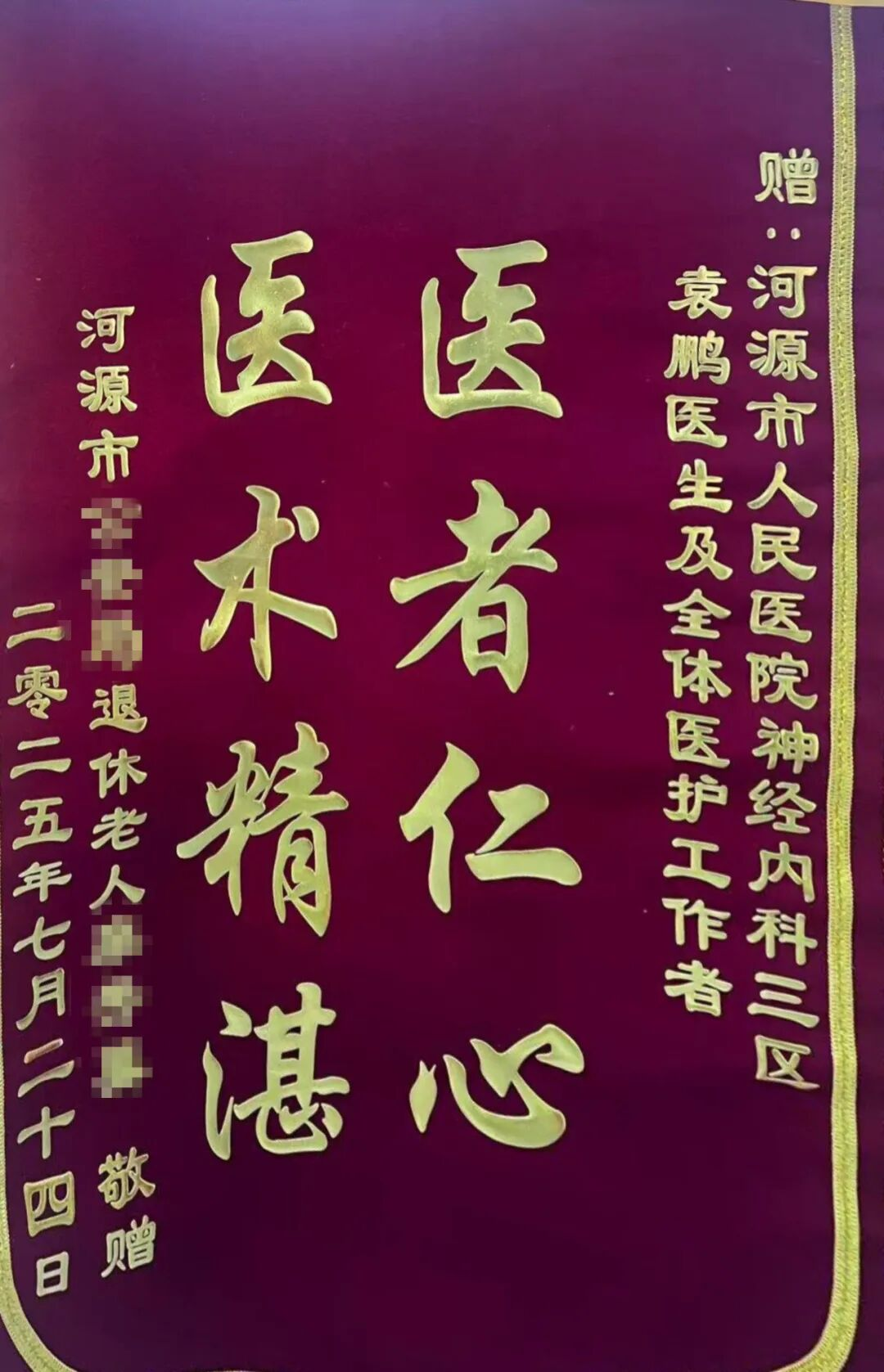 廖先生是神经内科三区收治的一位急性双侧小脑半球及小脑蚯部多发脑梗死患者。入院时主诉头晕,四肢肌力稍弱。经系统治疗后,其病情显著好转,出院时头晕仅于活动时偶有轻微发作,行走平稳,未出现其他不适。廖先生及家属对治疗效果非常满意,特赠送感谢信和锦旗,以表达对医护团队精湛医术和悉心照护的诚挚谢意。