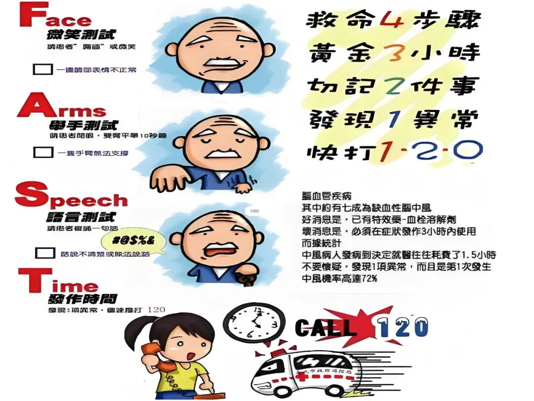 家中如何判断是否脑卒中我们可以使用“FAST”法判断脑卒中:F即face(脸),要求患者笑一笑,是否有嘴角歪斜,脑卒中患者的脸部会出现两边不对称,患者也无法呈现出笑容;A即是arm(胳膊),要求患者抬起双上肢,查看是否有肢体麻木无力现象;S即是speech(言语),请患者重复读一句话,看有无言语困难或者口齿不清;T即Time(时间),准确记录发病时间,紧急送医,除了这几个方面之外还有一个小技巧,就是让疑似的患者伸出舌头,如果舌头弯曲或者偏向以便,也是征兆,如以上动作患者有一个做不出,家属应该立即拨打120紧急送诊。