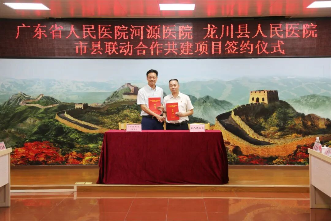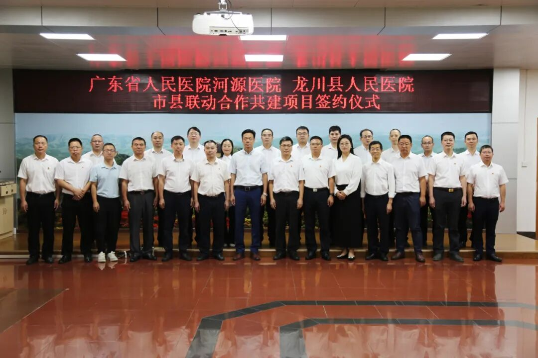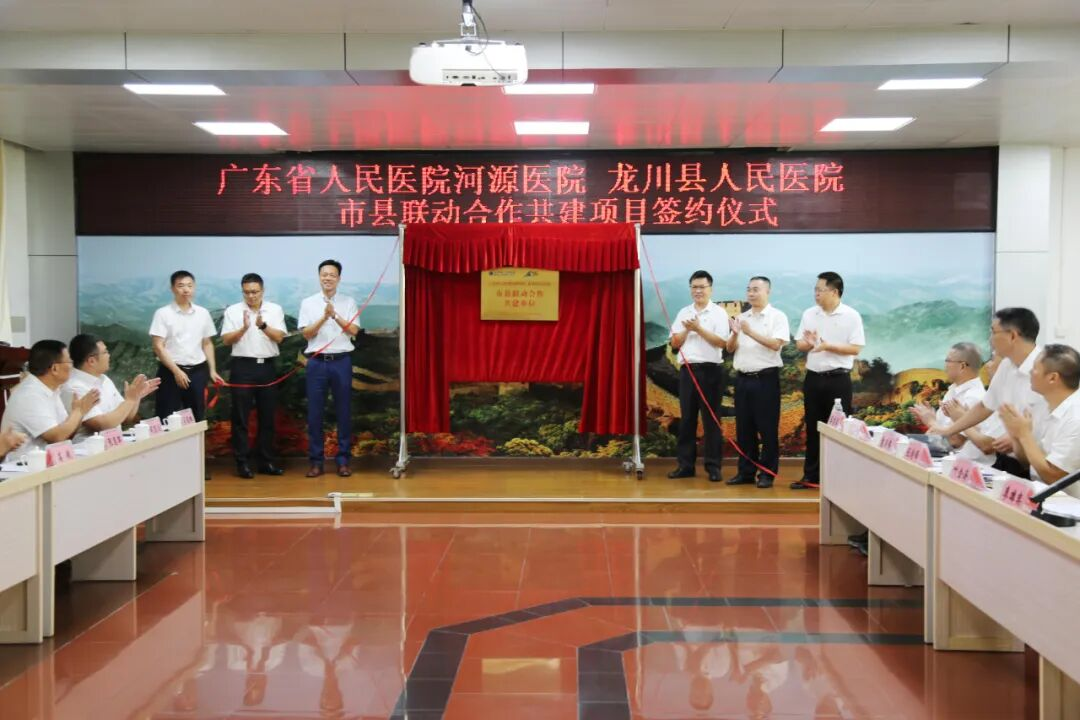 “市县联动”项目签约揭牌仪式在龙川县人民医院隆重举行,我院党委副书记、院长何鹏程,院党委委员、副院长丁美祥,龙川县卫生健康局党组成员、副局长廖雄奕,龙川县人民医院副院长卢文彬(主持党委、行政全面工作)出席签约仪式。