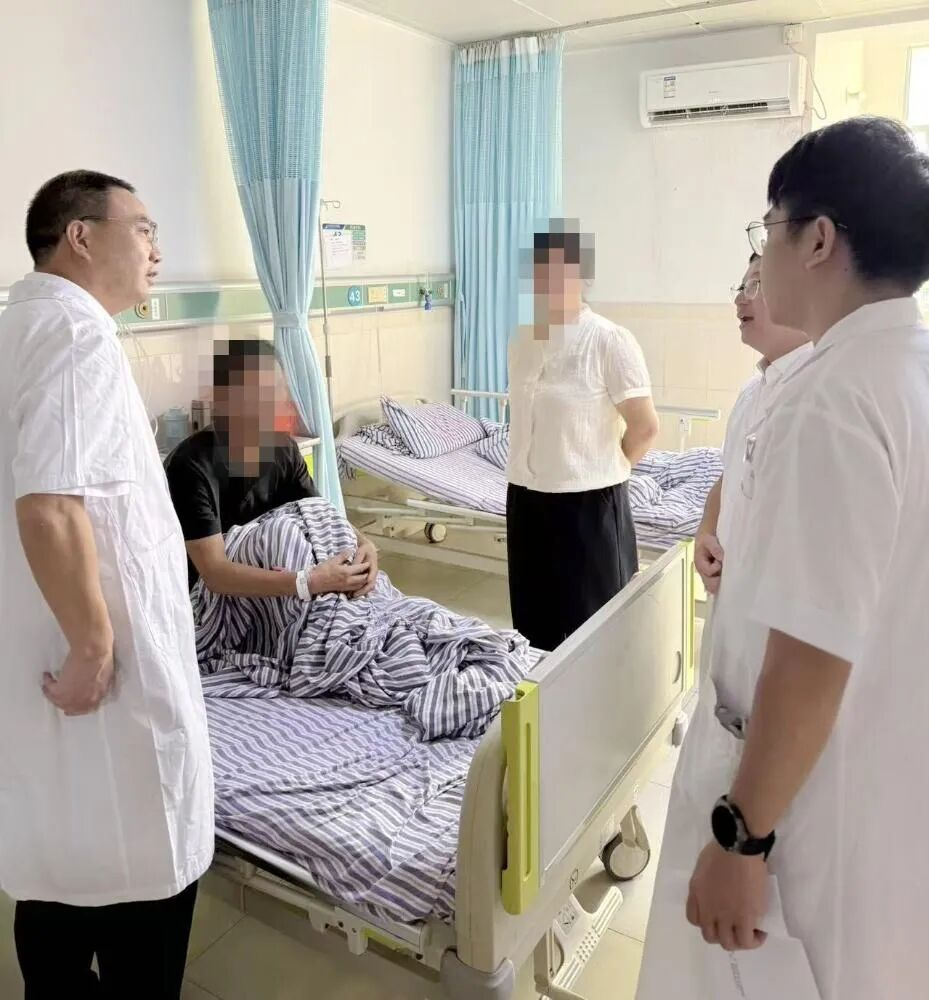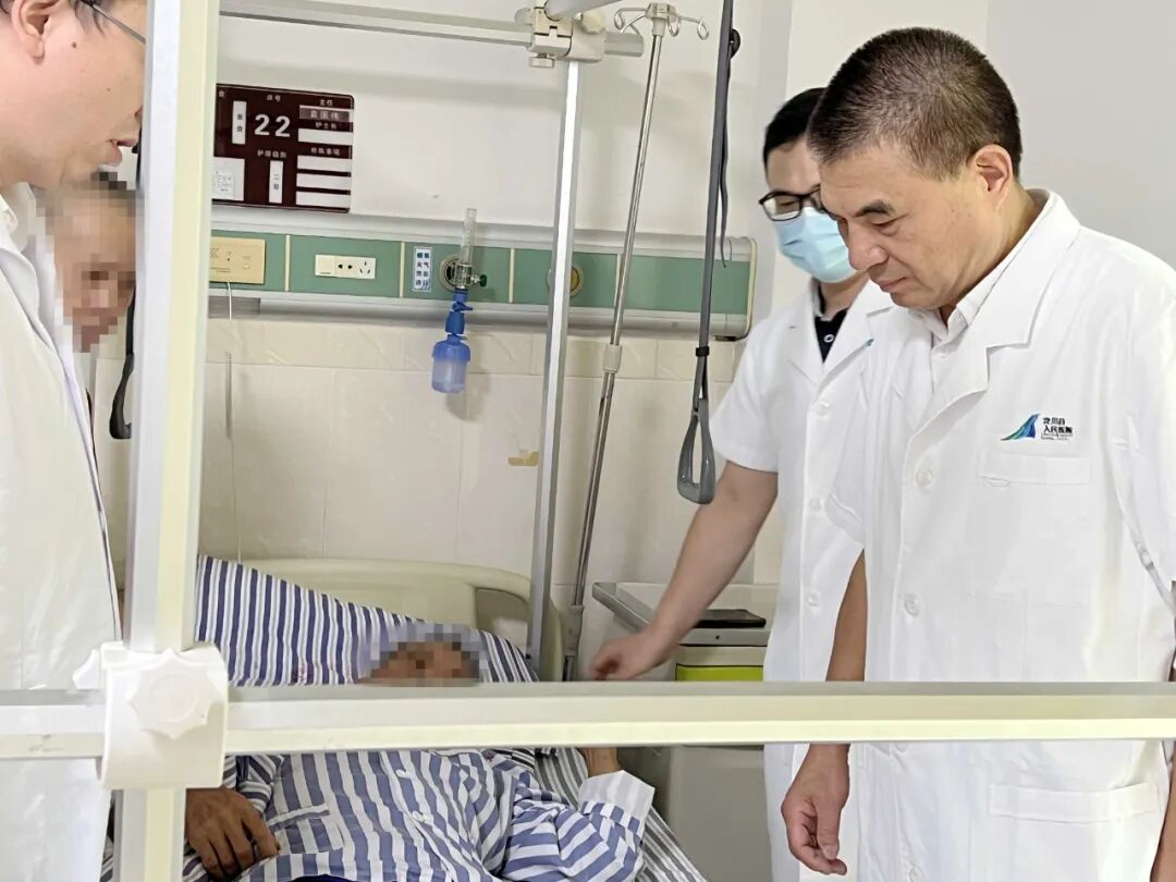 ▲我院大外科负责人、骨科主任陈子华(右一)在龙川县人民医院骨科病区查房