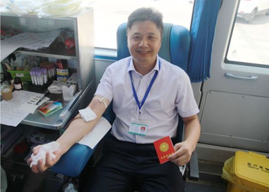 支部书记谢贤生,多次带头参加无偿献血