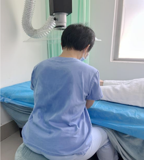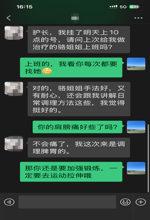 中医适宜技术不仅是技术活,更是体力活。棍针需长时间弯腰俯身,刮痧、火龙罐要求手腕沉稳。炎炎夏日,为患者做完一套完整的治疗后,骆方芳的护士服总被汗水浸透,后背洇开深色汗渍。同事劝她休息,她总是抹一把汗,笑着说:"病人感觉舒服了,我出点汗算什么。"这汗湿的背影,成为诊室里最动人的风景。