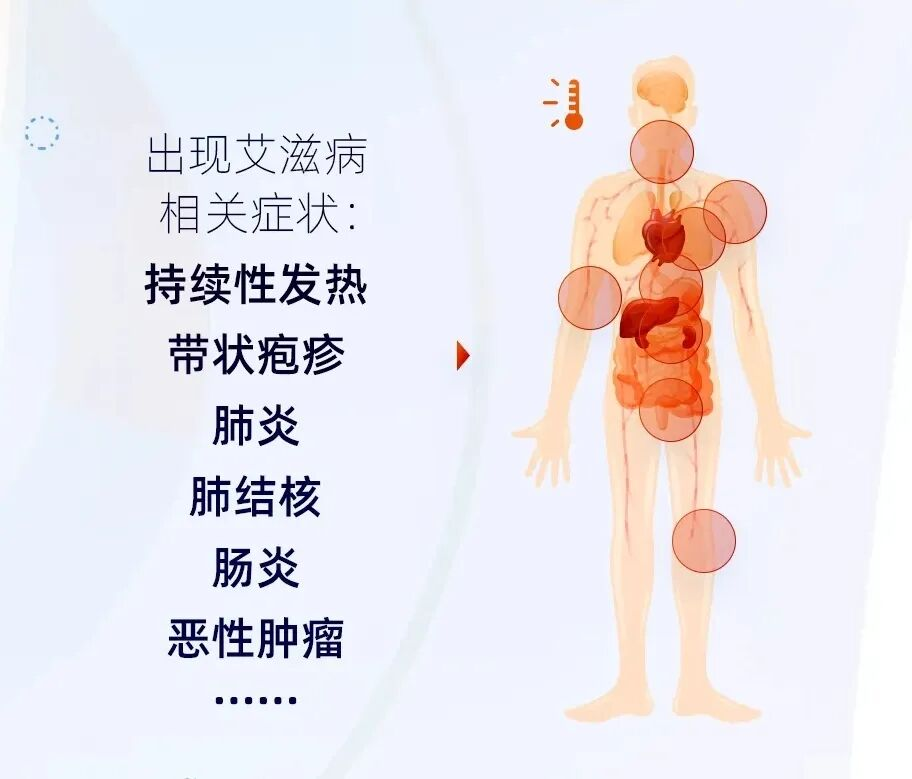 艾滋病期: 免疫系统崩溃,发生严重感染或肿瘤。
