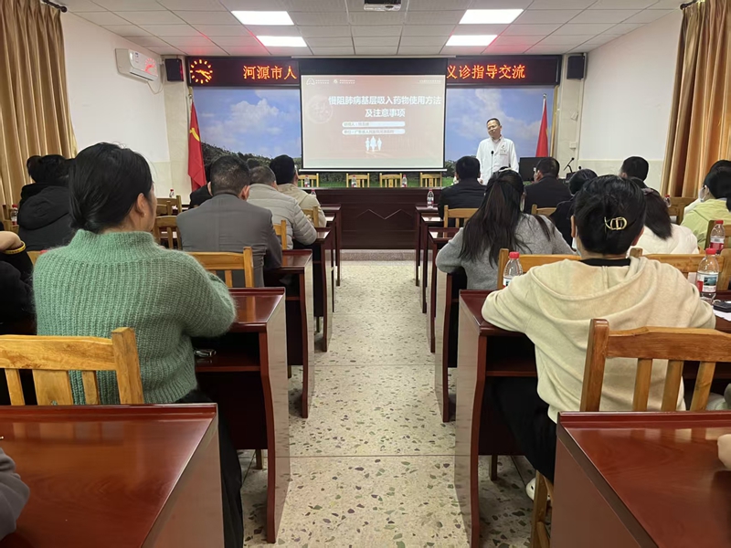 在为群众送去健康的同时,赋能基层医疗的专业培训也在同步进行。在卫生院的会议室内,我院呼吸内科专家杨龙峰主任医师为卫生院的医护人员带来了一场题为《慢阻肺病基层吸入药物使用方法及注意事项》的专题培训。课程内容紧贴基层实际,讲解生动详实,从药物选择、操作规范到不良反应处理,层层递进、重点突出,有效提升了基层同仁对慢阻肺这一常见慢性病的规范管理能力和用药指导水平,实现了“输血”与“造血”的有机结合。