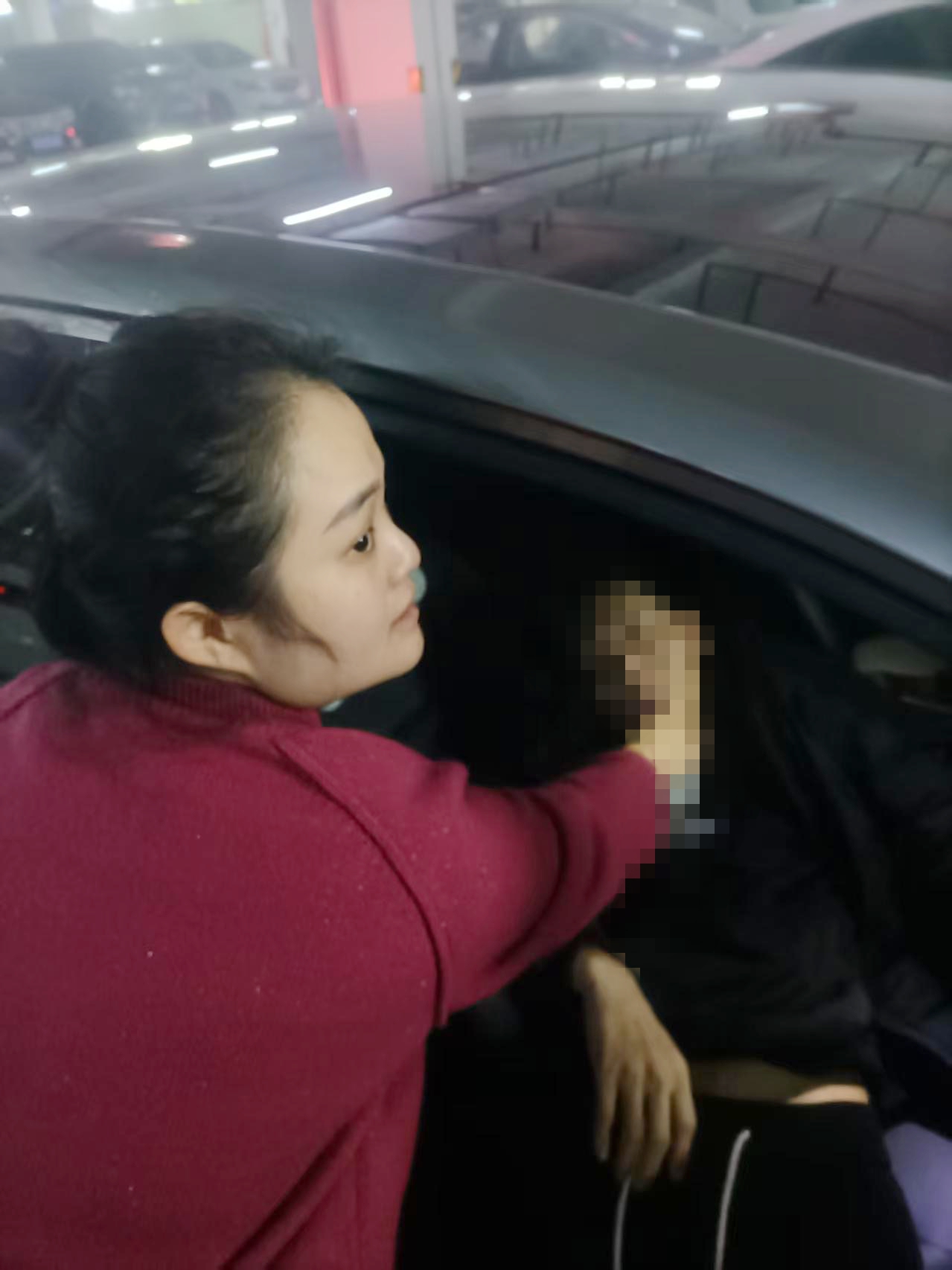 ▲欧阳诗护士在停车场紧急为晕倒患者掐人中施救