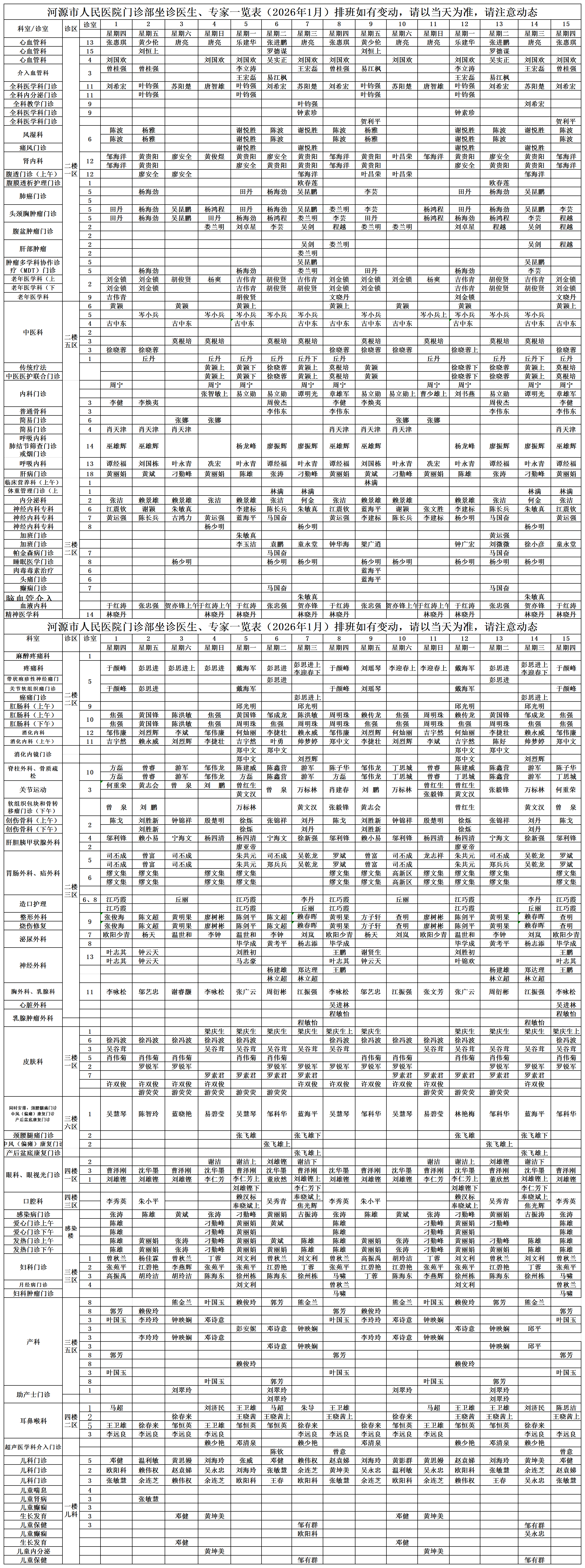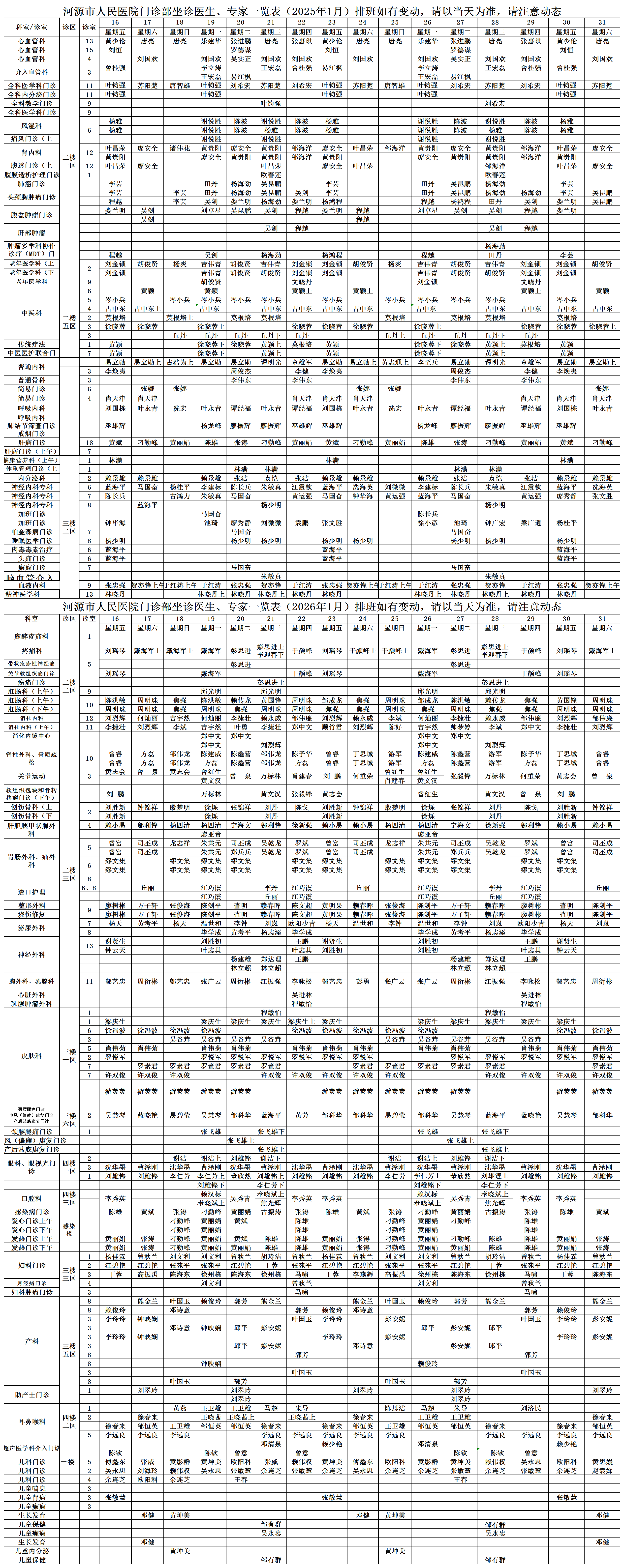 河源市人民医院门诊部坐诊医生、专家一览表(2026年1月)