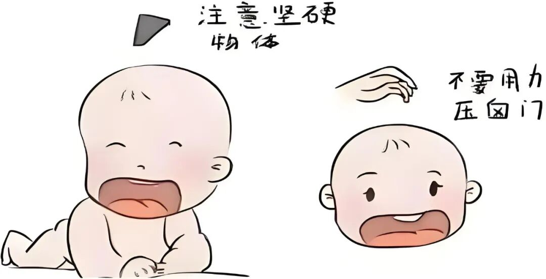 3.健康“晴雨表”:通过观察囟门的大小、张力、隆起、凹陷状态,可初步判断宝宝健康(如颅内压、营养状况等)。