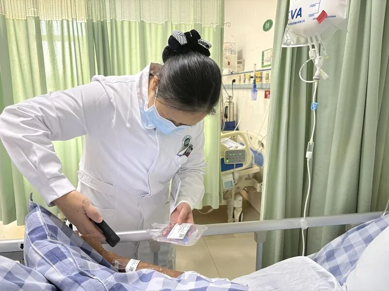 20年间,黄庆丰见证了医院的发展变迁,更亲历了无数个与生命赛跑的瞬间。普通外科经常会接收急腹症、严重外伤等危重患者,每当这时,作为主管护师的她总是第一时间冲在前面,带领年轻护士配合医生进行抢救。有一次,科室接收了一位因车祸导致腹腔大出血的患者,情况十分危急。黄庆丰沉着冷静地统筹协调,一边快速准备好抢救物品,一边指导年轻护士建立静脉通路、连接心电监护、备好血制品,每一个动作都精准而迅速。在长达5个多小时的抢救过程中,她始终坚守在患者身边,密切监测患者的生命体征,汗水浸湿了工作服也浑然不觉。经过医护人员的共同努力,患者终于转危为安。当患者家属握着她的手连连道谢时,黄庆丰说:“这是我应该做的,只要患者能平安,再辛苦都值得。”