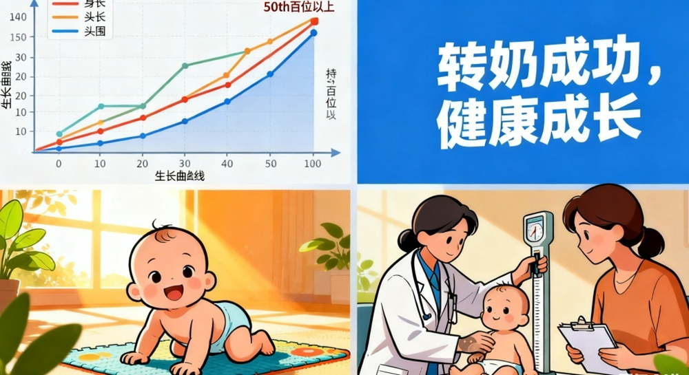 3.医生评估是关键:这是最不能省略的一步!转换奶粉前必须让儿科医生评估——包括生长曲线是否平稳上升、喂养是否耐受(无频繁吐奶、腹胀等)、有无贫血或其他并发症,确认正常后再启动转换普通奶粉。