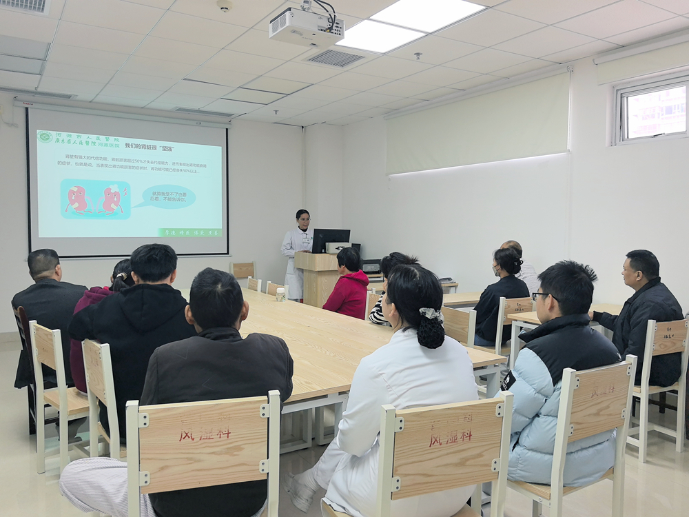 为响应世界肾脏日主题,普及肾脏健康知识,帮助大家早发现、早干预、规范治疗慢性肾脏病,同时践行“绿色护肾”理念,3月9日肾内科开展了健康讲座,为大家带来实用的护肾干货。