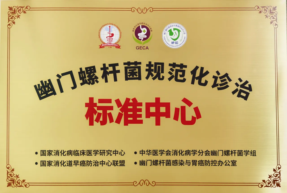 【喜讯】国家级认证!消化内科获批“幽门螺杆菌规范化诊治标准中心”