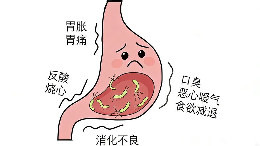 幽门螺杆菌(Hp)是一种可以在人体胃内生存的细菌,也是目前已知唯一能在胃的强酸环境中存活的微生物。它与多种胃部疾病密切相关,包括:慢性胃炎、消化性溃疡(胃溃疡、十二指肠溃疡)、胃癌及胃黏膜相关淋巴组织淋巴瘤。此外,幽门螺杆菌还可能与缺铁性贫血、特发性血小板减少性紫癜、湿疹等多种胃外疾病相关。