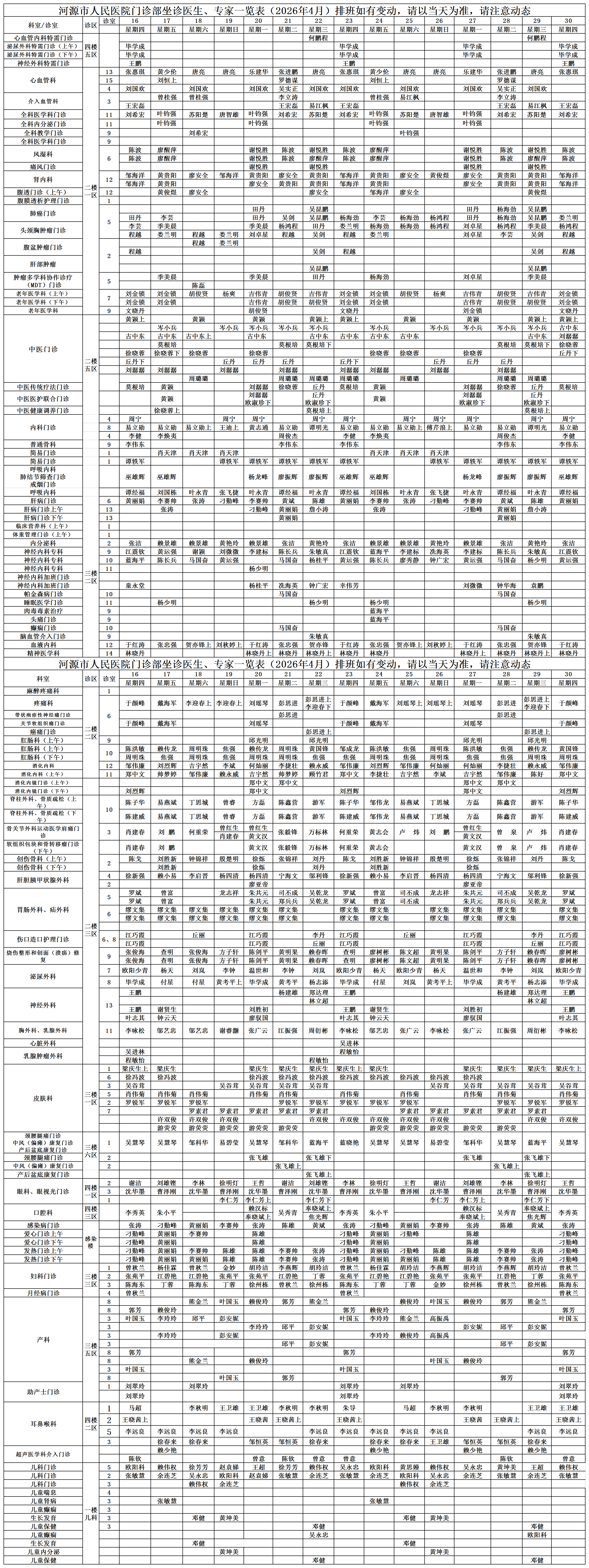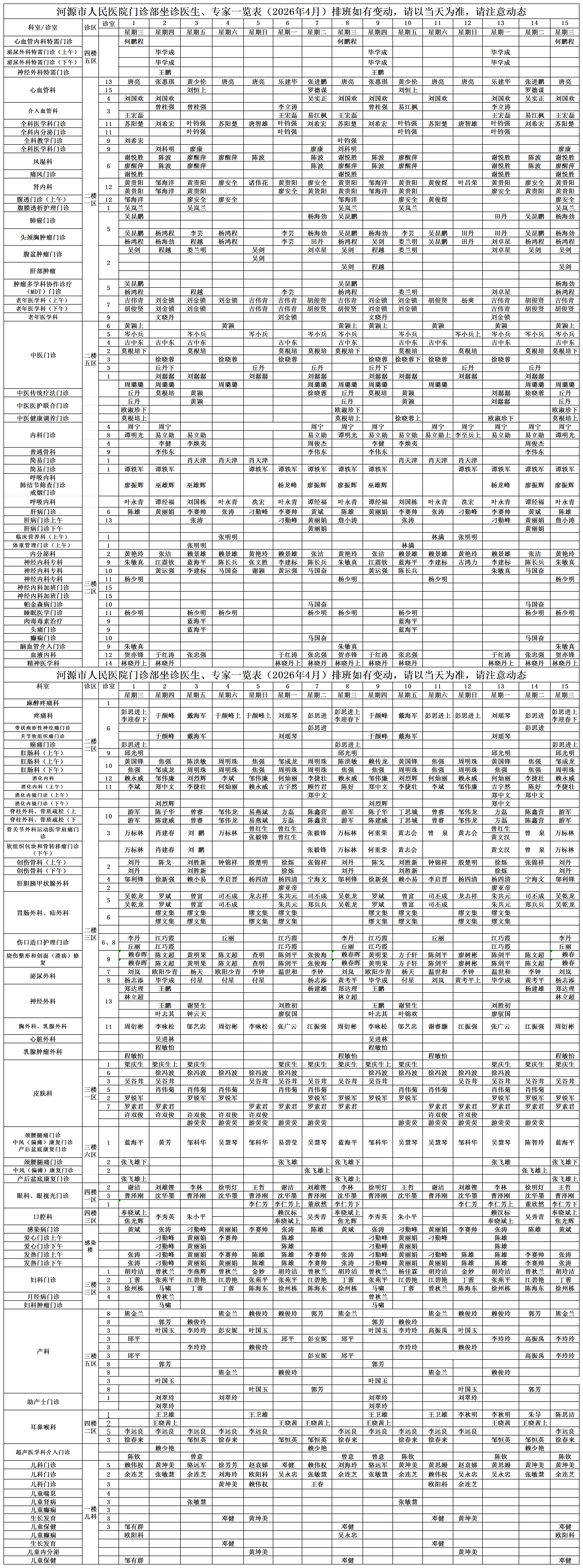 河源市人民医院门诊部坐诊医生、专家一览表(2026年4月)