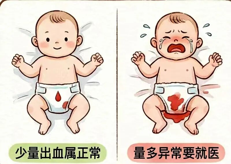 ▶观察即可:只要出血量不大,宝宝精神状态好,吃奶正常,就不需要特殊处理。