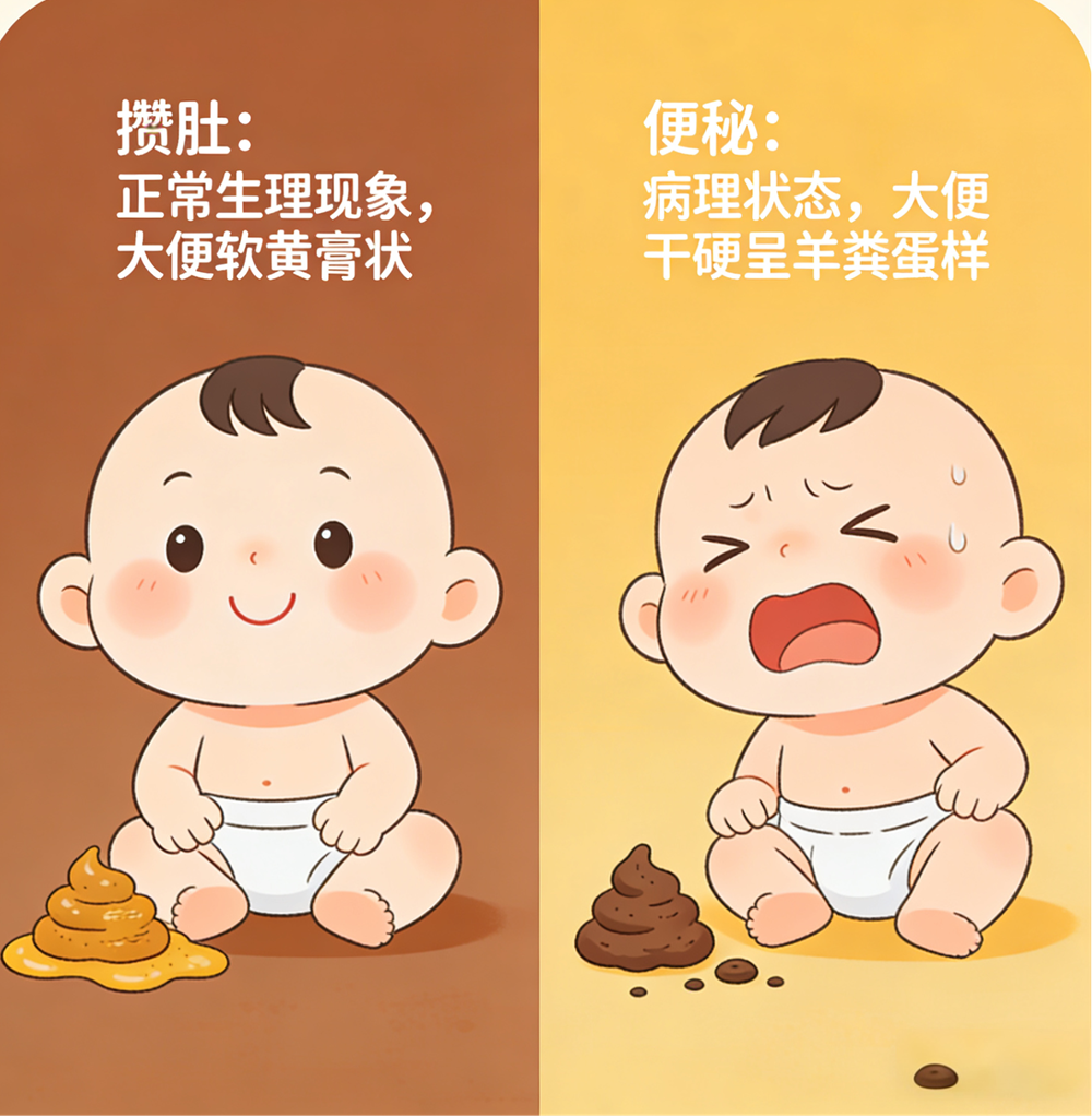攒肚(无需干预):多见于母乳喂养的宝宝,即便数日未解便,拉出的仍是软黄膏状大便,宝宝精神状态好、吃奶正常、腹部柔软,这是母乳吸收效果好的表现。