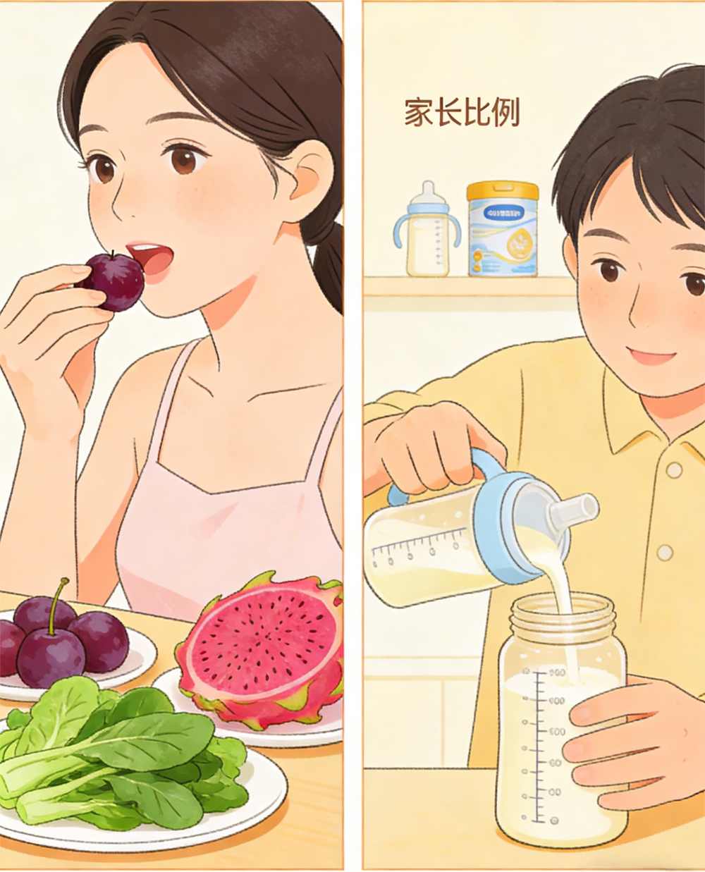 ②奶粉宝宝:把控冲调+按需换奶。
