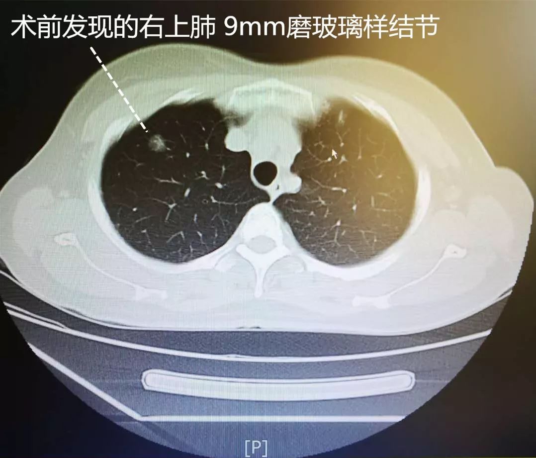 图1:术前发现的右上肺9mm磨玻璃样结节
