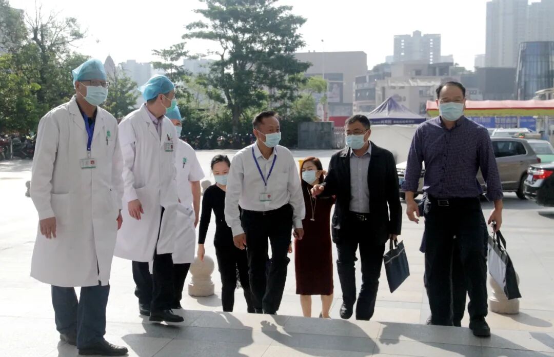 省人民医院呼吸内科高兴林主任医师在李志忠院长和何锦照副院长等人的陪同下,检查了我院门诊部各诊区和感染科,通过查看资料、访谈询问等方式,了解医院在疫情防控管理、医疗救治等方面的落实情况,高兴林主任医师还查阅了和了解我院感染科新冠肺炎在院患者的病例资料,对我院在疫情防控和救治方面取得的成绩给予了充分肯定,同时他结合自身丰富的临床经验,就新冠肺炎的救治提供了宝贵意见。
