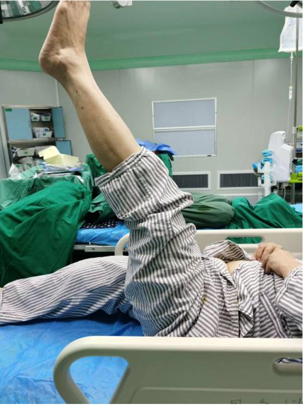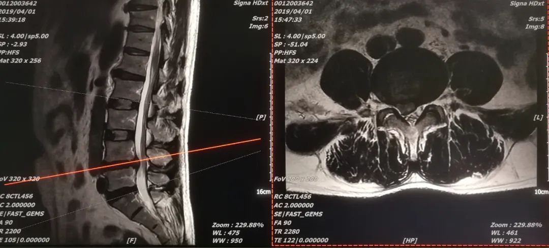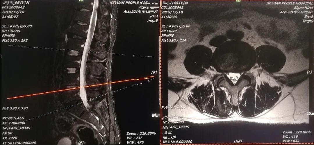 征得患者及家属同意,于4月22日,科室专家团队为该患者在局麻下实施微创椎间孔镜下腰4/5椎间盘突出摘除、神经根松解术。术后患者感觉腰腿疼症状明显改善,下肢抬高自如,取得满意效果。经腰椎MR复查,突出椎间盘组织完全摘除,目前患者已康复出院。